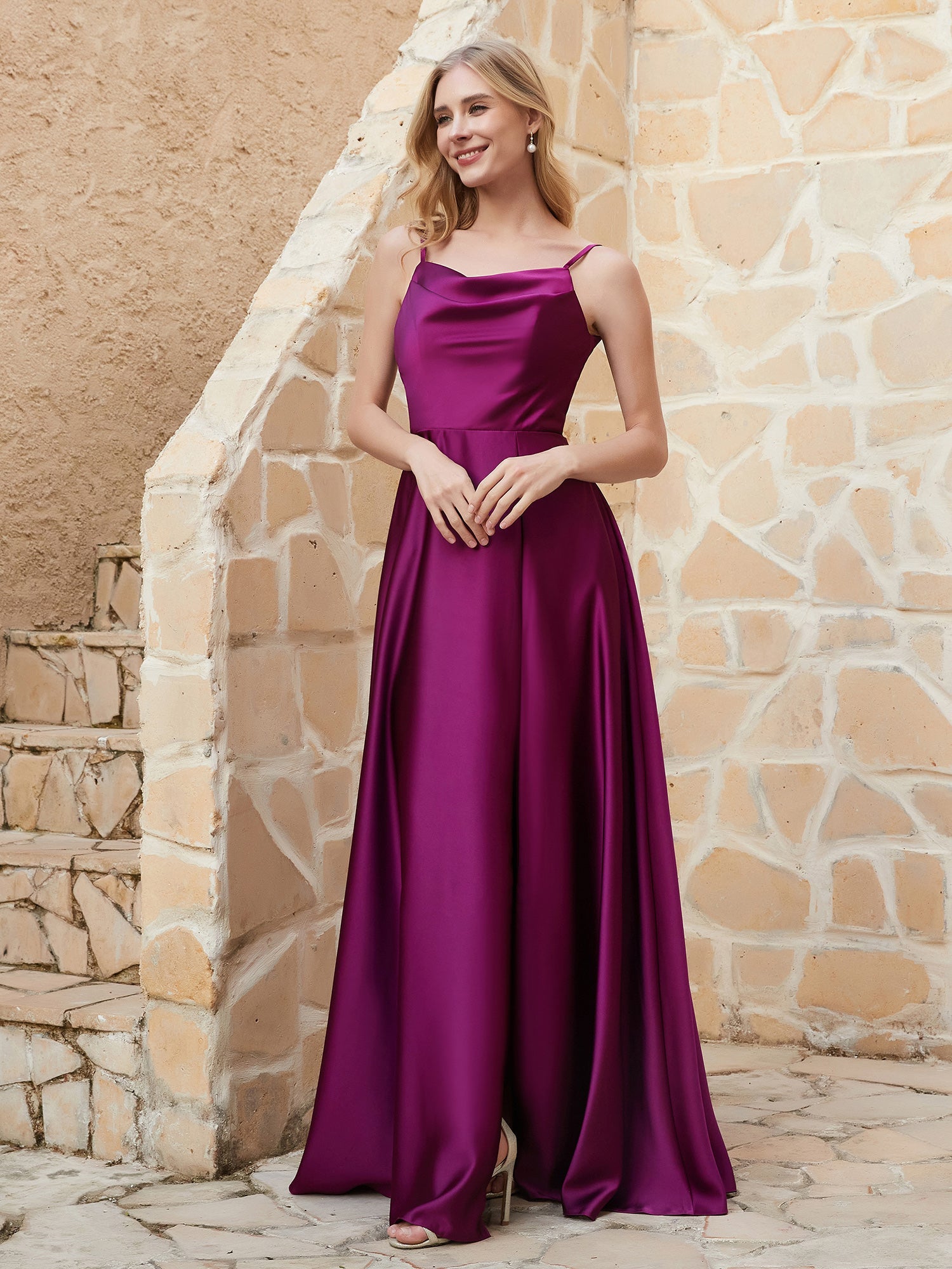 A Line Cowl Neck Satin Dress With Slit Orchid