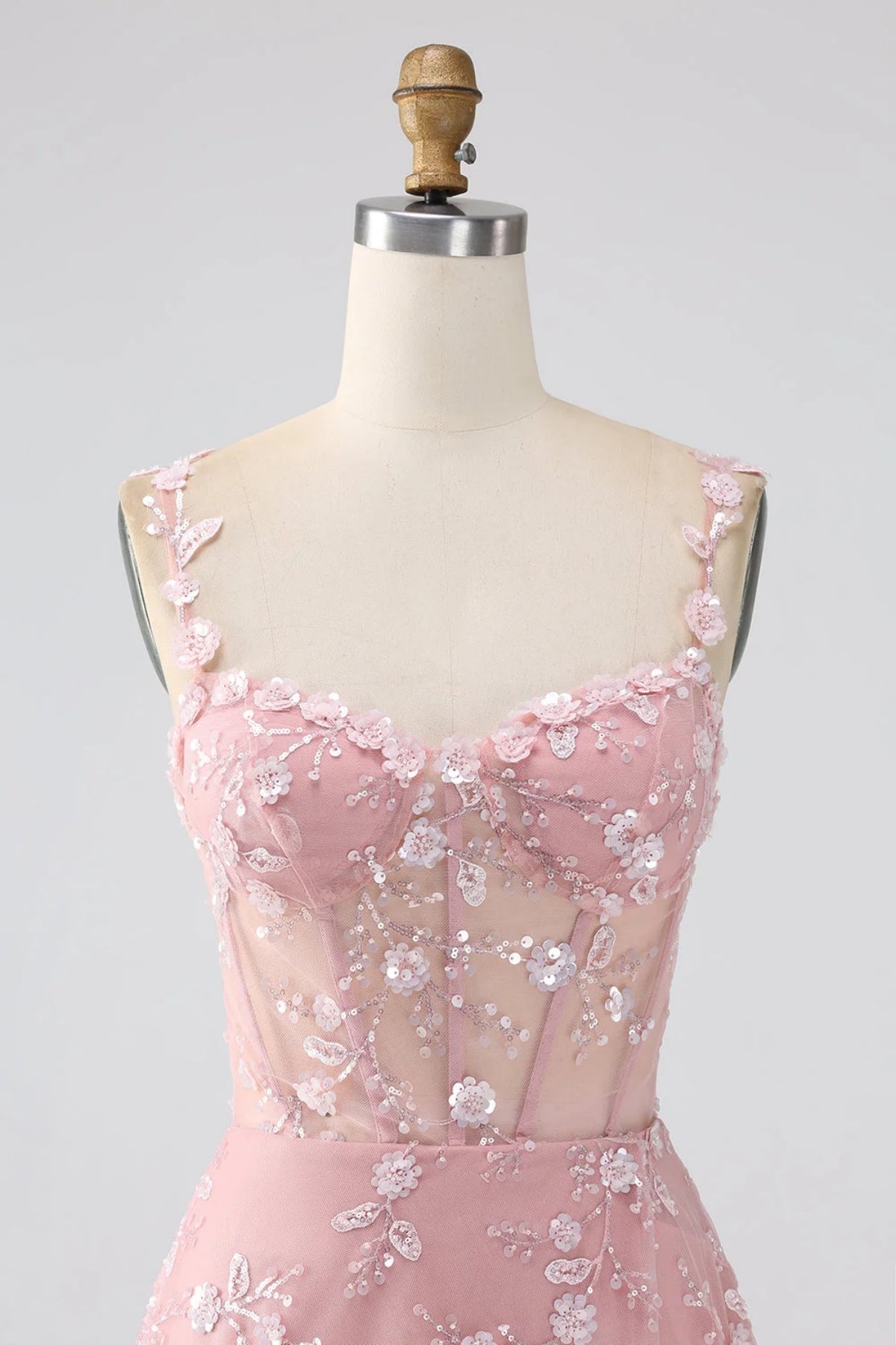 A Line Open Back Pink/Light Blue Lace Long Prom Dress with High Slit, Pink/Light Blue Formal Graduation Evening Dress with Appliques A2158