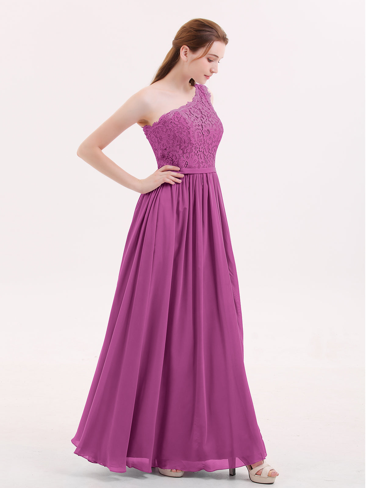 One Shoulder Chiffon And Lace Dress with Slit Orchid