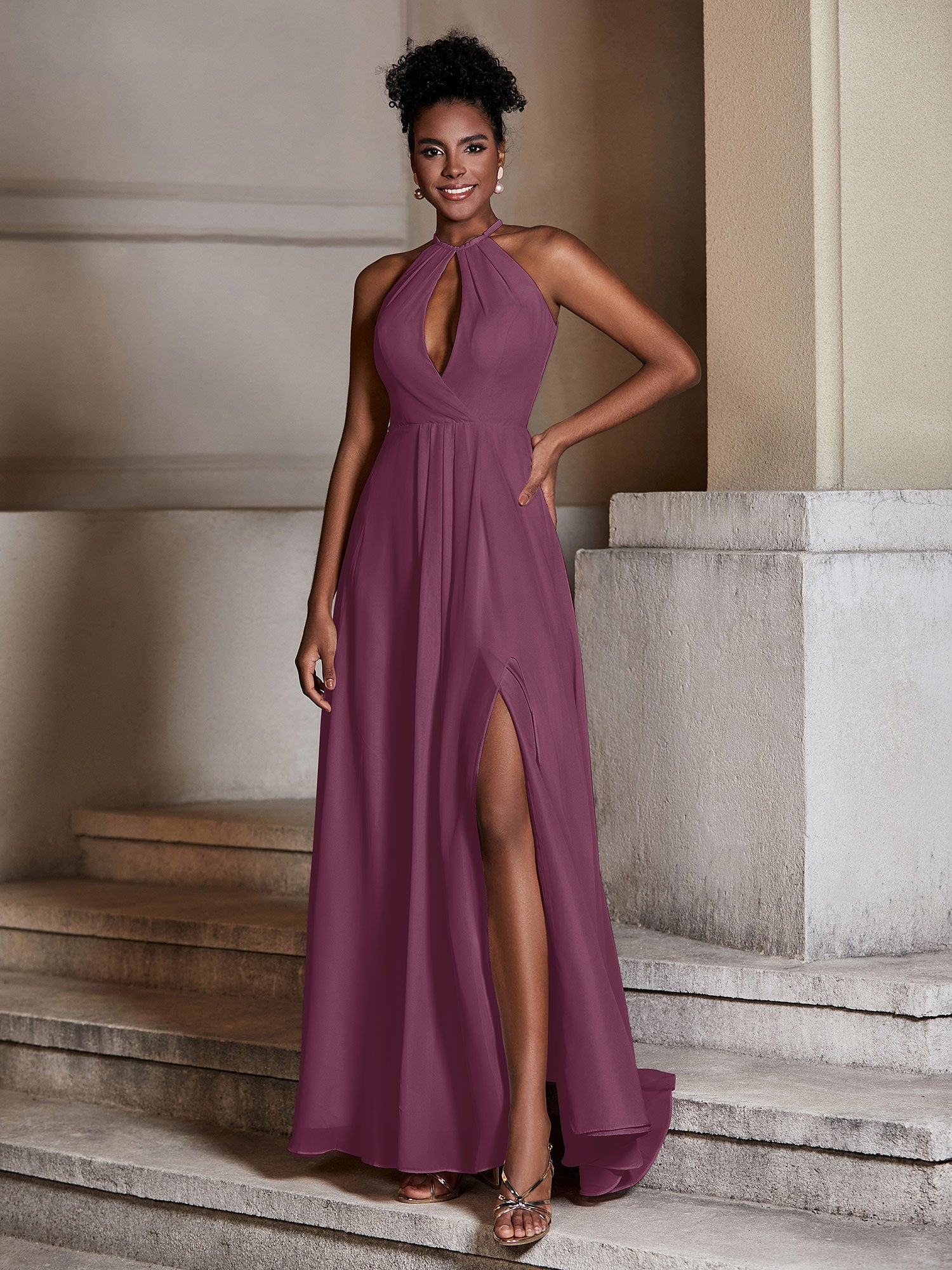Chiffon Long Halter Dresses with Slit-Mulberry