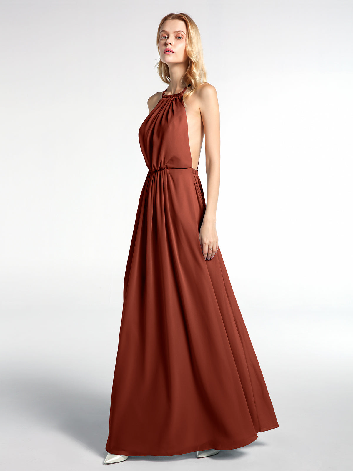 Halter Neck Low Back Chiffon Maxi Sexy Dress-Rust