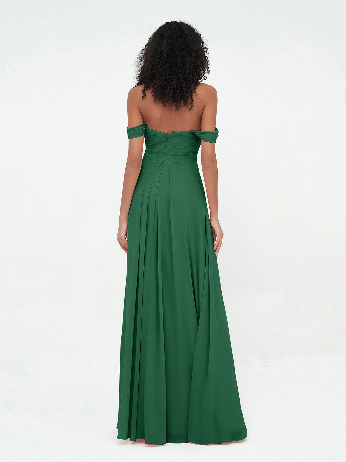 Off Shoulder Empire Dresses with Sweetheart Neck Dark Green