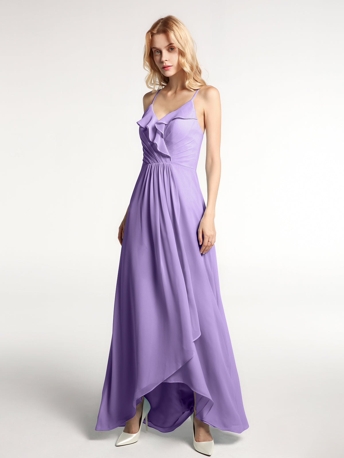 Spaghetti Strap Ruffles High Low Chiffon Dress-Tahiti