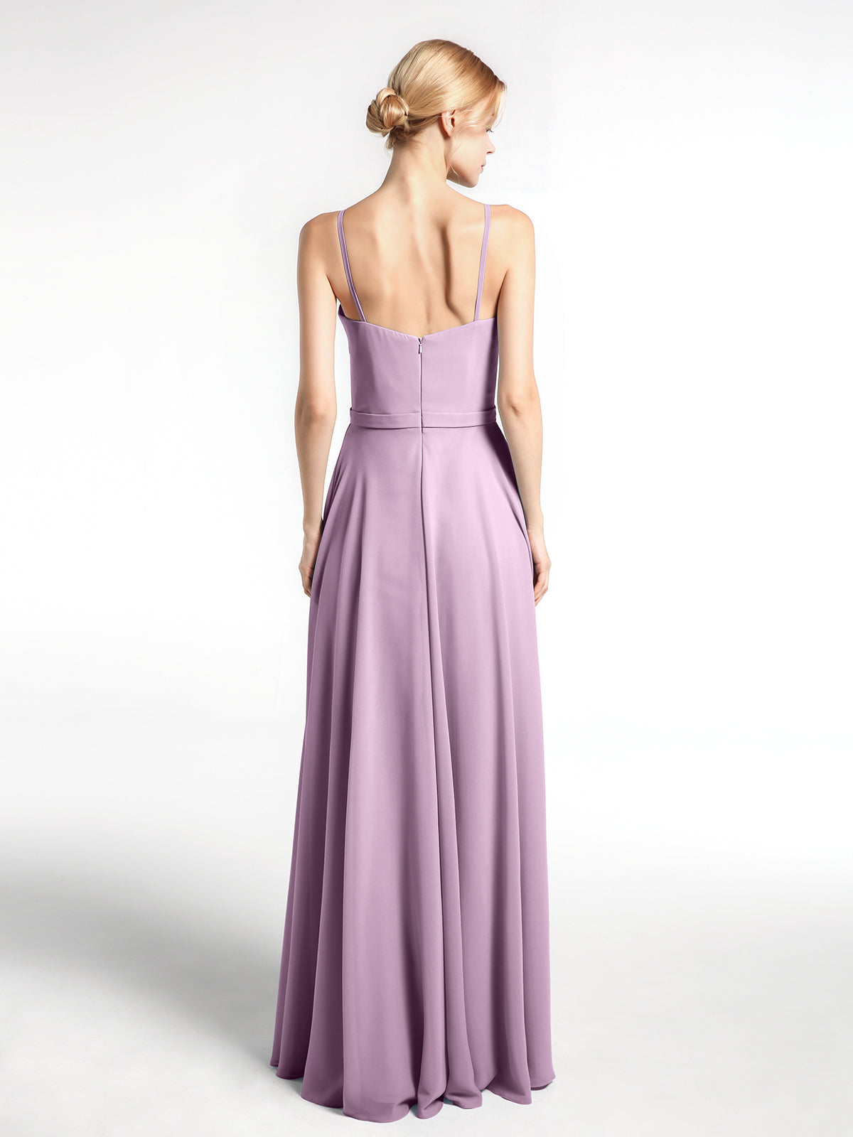 Spaghetti Strap Simple Chiffon Dress with Notch Neck Wisteria